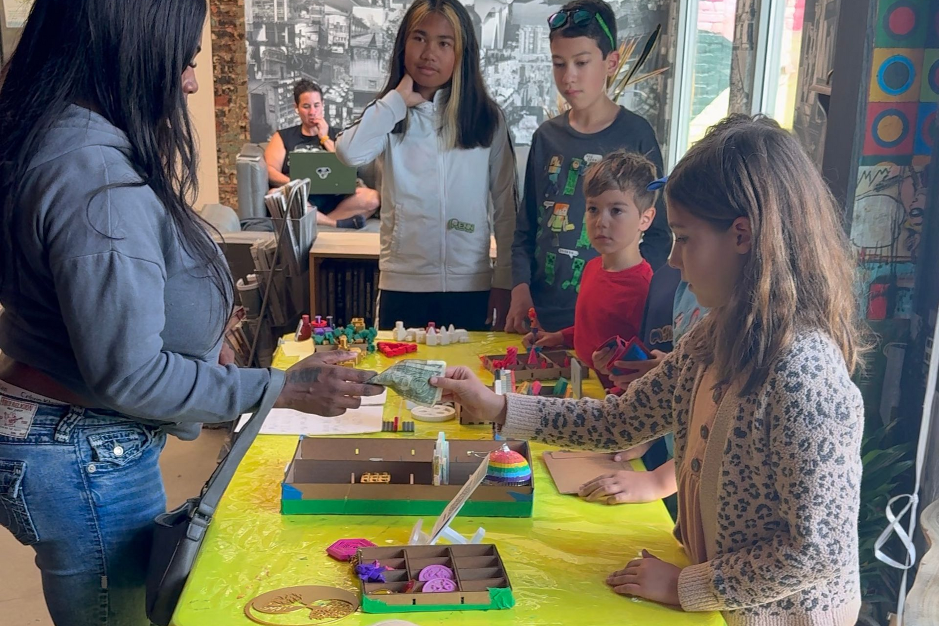 Our most popular workshop is back! We not only learn how to make using all of our 3D maker machines, but also to make that SALE! All week, they learn to make an inventory of their most appealing products, and also learn and practice how to vend in public. It can be a scary leap to make, but we teach them best practices to speak up and make a sale. All the money they make they keep! Kids are so proud of all the money they make at our pop up vending events!